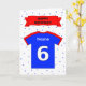 Personnalisez cette 6ème carte d'anniversaire d'amusement pour des enfants en ajoutant le nom de l'enfant sur l'avant et en customisant la salutation à l'intérieur. (Ou employez juste le défaut "qu'il est votre 6ème anniversaire - ayez un jour d'amusement ! ") la carte comporte un bleu et les sports rouges complètent, avec un grand numéro blanc 6 et l'espace pour le nom de l'enfant. Au dessus, une bannière rouge affiche le message "joyeux anniversaire" d'anniversaire, et il y a une dispersion de petites étoiles bleues sur l'arrière - plan de carte.