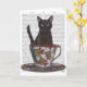 Chat noir dans Teacup par FabFunky. Comprend un chat assis dans un beau teacup fleuri. | 191389D