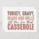 Cette conception amusante et festive de Thanksgiving présente la phrase ludique "Dinde, sauce, haricots et petits pains, laissez-moi voir cette casserole" dans une mise en page audacieuse et accrocheuse. Le texte est disposé dans un mélange de polices blockagées et élégantes, créant un effet visuel dynamique et engageant. La palette de couleurs comprend des tons chauds et terreux comme les bruns, les oranges et les rouges, reflétant parfaitement l'atmosphère chaleureuse et réconfortante d'un festin de Thanksgiving. La texture usée du texte ajoute une touche rustique et vintage au design, ce qui la rend idéale pour les fêtes.