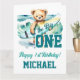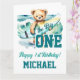 Le grand ours en peluche de la fête du surf avec une planche de surf et une carte de voeux d'anniversaire des vagues. Agréable pour les anniversaires de plage d'été.