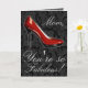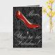 Maman, vous êtes fabuleux sur l'intérieur et l'extérieur ! Montrez votre sens de style avec cette carte chic du jour de mère de la chaussure élégante des femmes rouges superbes, pour la maman avec la mode et ouvrier. Talon stylet rouge impertinent, élégant et de haute couture de pompe, cuir verni en rouge cramoisi riche vibrant, avec montrer le côté et le fond. Arrière - plan noir et foncé de damassé de gris de charbon de bois. © www.CuteComfy.com de Copyright