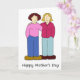 Deux femmes de bande dessinée avec leurs bras autour de l'un l'autre et des mots "le jour de mère heureux".