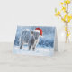 Joyeuses vacances de façon mignonne avec ce chéri veau des hautes terres ou de diriger dans la neige. Il regarde directement le destinataire, avec son casquette de St. Nick.