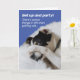 Photo amusante d'un chien allongé dans le lit, cachant son visage sous sa patte. Je sais exactement ce qu'il ressent quand il vieillit. La carte dit : "Levez-vous et faites la fête ! Il y a pire dans la vie que de vieillir..." A l'intérieur de la carte dit, "Je ne me souviens pas de ce qu'ils sont, mais je suis sûr que c'est bien pire. Joyeux anniversaire !"
