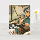 Une jolie dame se reposant dans sa chaise Papasan confortable lisant un livre, buvant du café avec un mignon chat noir et blanc qui dort sur ses genoux. Une carte mignonne pour rester en contact et dire bonjour à un ami!