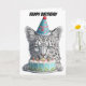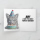 Carte Léopard des neiges avec chapeau d'anniversaire