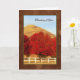 Les salutations d'un automne pensant à vous cardent avec les mots, "pensant à vous" sur l'avant. Vous pouvez ajouter un contact personnel au vers intérieur personnalisable qui lit : Car les jours se développent froids, les pensées de vous chaufferont mon coeur. L'image avant est une photographie de beaux arbres avec le feuille rouge vibrant rayant une barrière blanche de pays avec une montagne de l'Utah de désert à l'arrière-plan.