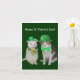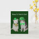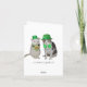 Carte de note St. Patrick personnalisable avec Missy dans une chance de bandana irlandaise, casquette et marguerite, .. et Mikie dans une cravate arc en paillettes verte et derby vert. Ces deux-là aimeraient être de gros chiens s'ils pouvaient être si chanceux. Vous pouvez modifier le texte et la couleur arrière - plan sur le devant, qui est maintenant un vert très foncé.