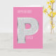 Carte d'anniversaire personnalisée avec nom lettre P argent rose monogramme gris faux paillettes glamour