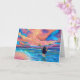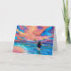 Envoyez un peu d'Aloha ou dites Mahalo avec cette carte colorée de coucher de soleil avec une fille hula saluant le matin à la mode hawaïenne.