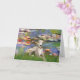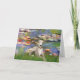 Water Lilies de l'impressionniste Claude Monet (1914), adapté pour inclure un Whippet. Un des nombreux tableaux de nénuphars, celui-ci a des nénuphars rouges ou roses vifs dans l'étang. Il a été vendu aux enchères en 2008 pour plus de 70 millions.