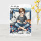 Une carte pour un jeune garçon cool qui aime lire des livres et sortir avec ses chats. Une scène avec un garçon assis en croix sur son lit lisant un roman avec ses deux chats en écoutant sa musique. Joyeux anniversaire, cool !