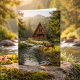 Carte Log Cabin, Stream and Deer, Happy Birthday