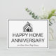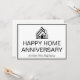 Cette carte professionnelle de bonne installation ou d'anniversaire de maison est personnalisée avec le nom de votre entreprise de biens immobiliers sous le script moderne. Ces cartes de visite de courtage immobilier blanches et noires comportent un logo de maison qui peut être conservé ou remplacé. Ajoutez vos coordonnées de courtier immobilier et votre message au verso de cette carte de marketing.