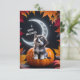 Carte Loup mignon avec lune croissante, nuit d'automne