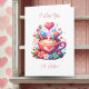 Carte personnalisée pour la Saint-Valentin ou anniversaire. Coupe de café avec coeur et fleurs. Saint Valentin ou carte anniversaire pour elle. Deux mignons grains de café à l'intérieur. De mignons et adorables puns "love and coffee".