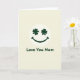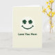 This greeting card features a simple smiling face centered on a pale cream background, giving the whole scene a soft, cozy look. The face is a smooth white circle, and its “eyes” are two matching dark emerald shamrocks that seem to look out with a sweet, affectionate gaze 💚. A thick curved smile in the same green sits below, like a gentle grin meant just for Mom. Under the face, the words “Love You Mom” appear centered near the bottom in a rounded sans-serif font. The text is also dark emerald green, tying it neatly to the shamrock eyes and the smile ☘️. With only cream, white, and deep green, the design stays calm and uncluttered while still feeling close and caring. The shamrocks are evenly spaced as the eyes, and the green smile arcs smoothly beneath them.