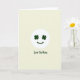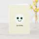 This card features a pale cream background with a crisp white circle in the center framing a simple face. Instead of eyes, two emerald green shamrocks sit evenly spaced, like a sweet, knowing glance that feels close and affectionate ☘️. A small curved smile rests beneath them, giving the face a gentle, friendly look. The limited colors keep the scene calm, with the green standing out against the soft backdrop 💚. Below the circle, the words “Love You Nana” appear centered near the lower portion of the card in forest green lettering. The matching green ties the message to the shamrock eyes, as if the face is smiling directly at Nana. The shamrocks are neatly shaped and symmetrical, sitting high on the face inside the white circle.