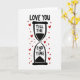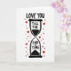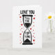 This greeting card features a black-and-white hourglass centered on a white background, creating a strong and meaningful image. The hourglass is drawn with a thick black outline, and the sand inside appears as solid black shapes filling both the top and bottom sections. Scattered around it are small red hearts in different sizes, adding warmth and contrast. At the top, the words “LOVE YOU” are written in a hand-drawn style that feels personal and sincere. Inside the hourglass, the message continues with “TILL THE” in the upper half and “END OF TIME” in the lower half, reinforcing the idea of lasting love. The red hearts are the only bright color, drawing attention and emotion to the design. This card is a thoughtful way to share commitment and affection with a partner or close friend on Valentine’s Day or any meaningful moment.