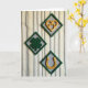 This design shows three diamond-shaped frames in deep forest green, set on a muted gray mat and arranged in a staggered diagonal across softly wavy vertical stripes. The background bands shift through muted cream, pale yellow, soft sage, and charcoal, giving the scene a cozy, textured look. At the top, two nested golden hearts overlap with a gentle metallic shine, like a quiet closeness between two people. Nearby, a green shamrock sits neatly within its frame, adding a classic St. Patrick’s Day touch ☘️. In the lower right, a golden horseshoe curves upward, its bright edge catching the light as if it’s guarding a little shared luck 💚. There’s no headline text, so the symbols and spacing do the talking, with the shapes centered inside each frame and plenty of open space around them. Soft, even lighting creates small shadows along the frame edges, and the uneven stripe lines drift vertically behind the trio.