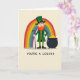 This card shows a cheerful leprechaun centered on a warm beige background, dressed in emerald green with a tall hat and gold buckle, a neat jacket, and green-and-yellow striped trousers. He grips a walking stick and wears a wide, welcoming smile, like he’s sharing a private joke with someone close 💚. His bright orange beard and rosy cheeks stand out against the green outfit, giving his face an easy, friendly warmth. A rainbow arcs behind him 🌈, filling the upper area with bands of color that frame him like a spotlight. To his right sits a black pot tipped slightly forward, packed with gold coins, with a few coins scattered nearby as if just spilled. Below the scene, the phrase “YOU’RE A LEGEND” appears in large, dark lettering centered near the bottom edge. The rainbow curves across the top half while the pot of gold anchors the right side, and the coins glint in small yellow circles against the beige ground.