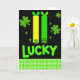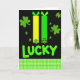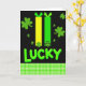 This St. Patrick's Day card features a high-contrast illustration set against a deep black background, where lucky symbols float like confetti around the main design ☘️. Near the top, two tall, stylized pillars stand side by side—one sunny yellow and the other lime green—each topped with a small bow, like matching gifts meant for two close friends. A light scatter of shamrocks and tiny star-shaped clovers drifts around them, creating the feeling of shared glances and inside jokes in the middle of a celebration 💚. Centered below, the word “LUCKY” appears in large, rounded 3D bubble letters, glowing in bright green with shiny highlights. The text sits prominently in the middle area, with its green color echoing the clovers above and drawing the eye downward. At the bottom quarter of the design, a green-and-white gingham pattern forms a neat base, like a picnic cloth under the floating shapes. The final look includes the black field, the yellow-and-lime pair with bows, the green “LUCKY” lettering, and the crisp gingham strip along the lower edge.