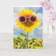 Lunettes de soleil roses sur le tournesol dans le domaine de tournesol.