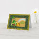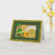 Un lutin dans son casquette et costume de fantaisie se repose sur un tronçon en bois tandis que tenir et regarder son pot d'or et de lui est extrémité d'arc-en-ciel. Mignon et traditionnel comme la fable. Vous pouvez customiser le texte avant et intérieur pour adapter. A un scintillant, miroite comme le regard et se sent à lui.