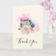 Carte de voeux Merci avec une image délicieuse. 3 macarons colorés, roses, verts et bleus avec un bouquet floral rose et une petite touche d'aquarelle rose derrière. Délicieux et élégant aussi !