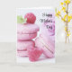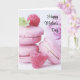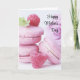 Carte de fête des mères avec une délicieuse photographie représentant une tour de macarons roses avec des framboises disposées autour. Délicieusement divin.
