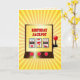 Une carte d'anniversaire pour un ventilateur de machine à sous. Une carte de 27ème anniversaire montrant une photo d'une machine à sous. Le nombre dans la ligne gagnante est 27.