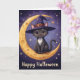 Carte Magique Halloween Chat noir sorcière Casquette et