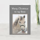 Voeux de Noël magique avec la neige White Horse Animal pour le patron qui aime les chevaux