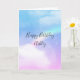 Carte de voeux avec une image arrière - plan douce et agréable. Le bleu pastel et les nuages roses avec un arc-en-ciel magique.