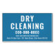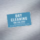 Carte de visite magnétique de nettoyage à sec avec une couleur et un texte arrière - plans modifiables. Modifiez le modèle avec un slogan, un site Web, des poignées de médias sociaux, un téléphone et une adresse pour promouvoir votre entreprise de services de nettoyage.