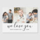 Des magnets de carte de Fête des pères imprimés et abordables personnalisés avec vos photos et texte. Ce design minimaliste moderne comprend un collage photo avec 3 photos et texte chic qui dit "We Love You - Happy Fête des pères Dada" ou vous pouvez le customiser avec votre propre message spécial. Utilisez les outils de conception pour modifier la couleur de l'arrière - plan, ajouter des photos, modifier le texte et customiser les polices et les couleurs pour créer vos propres cartes de voeux de Fête des pères pour papa et grand-père.