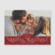 Carte magnétique de Noël Rustic Red Plaid Photo. Cliquez sur le bouton Personnaliser pour customiser ce design avec vos photos et votre texte.