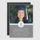 Carte modèle de graduation magnétique personnalisable dans l'élégante et chic aqua bleu ciel turquoise, gris fusain foncé et blanc design moderne.