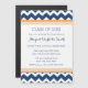 Carte modèle d'invitation à la sortie magnétique personnalisable dans chic et élégant orange clair, bleu marine foncé et blanc rétro chevron zigzag raypes motif.
