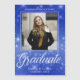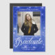 Faire-part photo chic bleu brillant avec votre nom de lycée et classe personnalisé sous votre photo portrait senior tendance. Personnalisez ces cartes élégantes pour une jeune diplômée de la classe de 2025. Customisez avec votre photo d'étudiant avec vos coordonnées de début.
