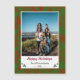 Avec un design élégant et fantaisiste et des couleurs traditionnelles vert et rouge, cette carte encadre votre photo de famille et votre message de vacances personnel magnifiquement.