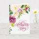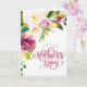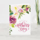 Magnifique bouquet floral aquarelle, carte pour la fête des mères. La carte comporte "Joyeuse fête des mères" en gras script rose. Le modèle offre un espace pour votre message personnalisé à l'intérieur ou supprimez le texte intérieur et laissez-le vide pour un message manuscrit.