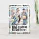 A hilarious illustration captures a couple and their loyal dog united in barking at the mailman, paired with the playful phrase “Love is barking at the mailman together.” This lighthearted card celebrates shared chaos, pet parent life, and everyday love with humor.