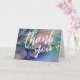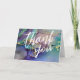 Le arrière - plan de cette pièce audacieuse et unique présente un morceau de mon art abstrait d'origine. Entrelacé dans les formes de marbre organique dans les tons violet, vert, bleu, rose et turquoise sont des veines et des éclats de faux or métallique. La forme d'art fluide rappelle une partie de l'aquarelle abstraite, bien que l'effet soit obtenu par l'utilisation d'"encre à alcool". En superposant l'arrière - plan artistique, j'ai placé un graphique lisant "merci" dans une police d'écriture décontractée.
