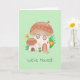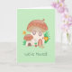 Maison de champignon de fée avec portes rondes et fenêtres, plante de lanterne chinois pour une lumière de porche, minuscule moulin sur un toit, et même un garde-manger à l'intérieur d'un petit champignon. La carte est vide à l'intérieur.