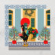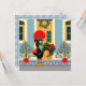 Cette illustration de Noël festive et élégante met en valeur la façade jaune d'une vieille maison traditionnelle portugaise ornée de portes et de fenêtres en bois et de balcons en fer forgé. Le pavement portugais orne le trottoir, tandis que deux arbres de Noël ornés de boules de Noël colorées se dressent à l'entrée. Une couronne de Noël orne la porte. La scène capture l'essence de Noël portugais dans les rues - un mélange harmonieux d'architecture traditionnelle et d'esprit de fête joyeux.