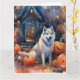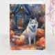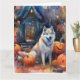 Carte Malamute d'Alaska Halloween avec des citrouilles é