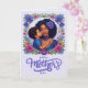 Capturez l'essence de l'amour avec notre superbe carte de fête des mères à filigrane floral. Dotée d'une illustration touchante d'une jeune maman afro-américaine et de son adorable fils tout-petit, habillés de tenues assorties violettes et bleues, partageant un doux baiser sur la joue. Parfaite pour les mamans, les mamans bonus, les mamans adoptives, ce design incarne le thème printanier de renouveau et d'amour. Personnalisez avec votre propre message si vous le souhaitez. ©2024 Miss Sassy Party Designs