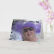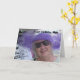 Une dame douce ayant l'amusement essayer sur des casquettes à une boutique de cadeaux, décrite sur l'avant de cette carte pour l'anniversaire d'une maman.