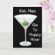 Un verre à martini à la vodka ou au gin, un olives vertes et un cure-dents sont présentés sur un arrière - plan noir. Mange, Nap, Aller à Happy Hour est écrit en blanc. Une image plus petite de la boisson est à l'intérieur avec Wishing You a Happy Birthday greeting. Conserver tel quel ou toute formulation peut être modifiée ou supprimée. Un design amusant pour encourager une célébration cocktail.